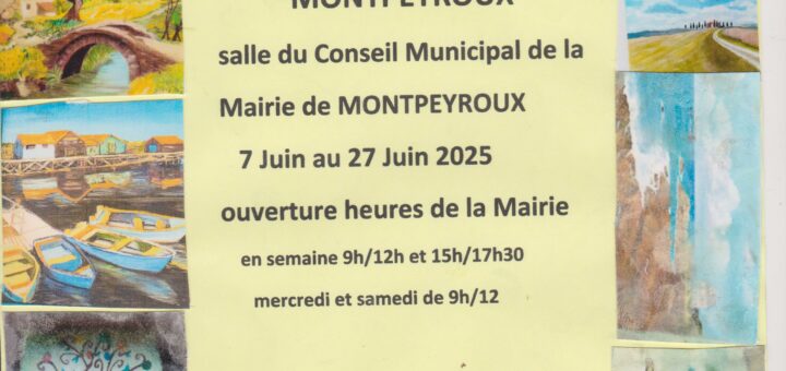L’Atelier du Lundi vous propose une exposition  dans la salle du conseil municipal du 7 au 27 juin 2025 aux heures d’ouvertures de la mairie. Vernissage le 6 juin à partir de 18h.